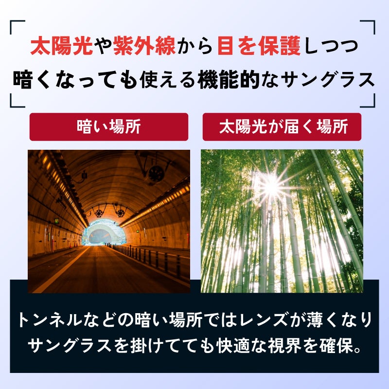 商品内容 調光サングラス、メガネ拭き、ハードケース、ソフトケース、インナーフレーム