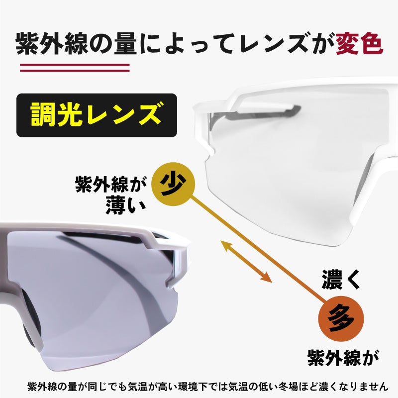 材質 PC調光レンズ、PCテンプル、TRゴムフレーム