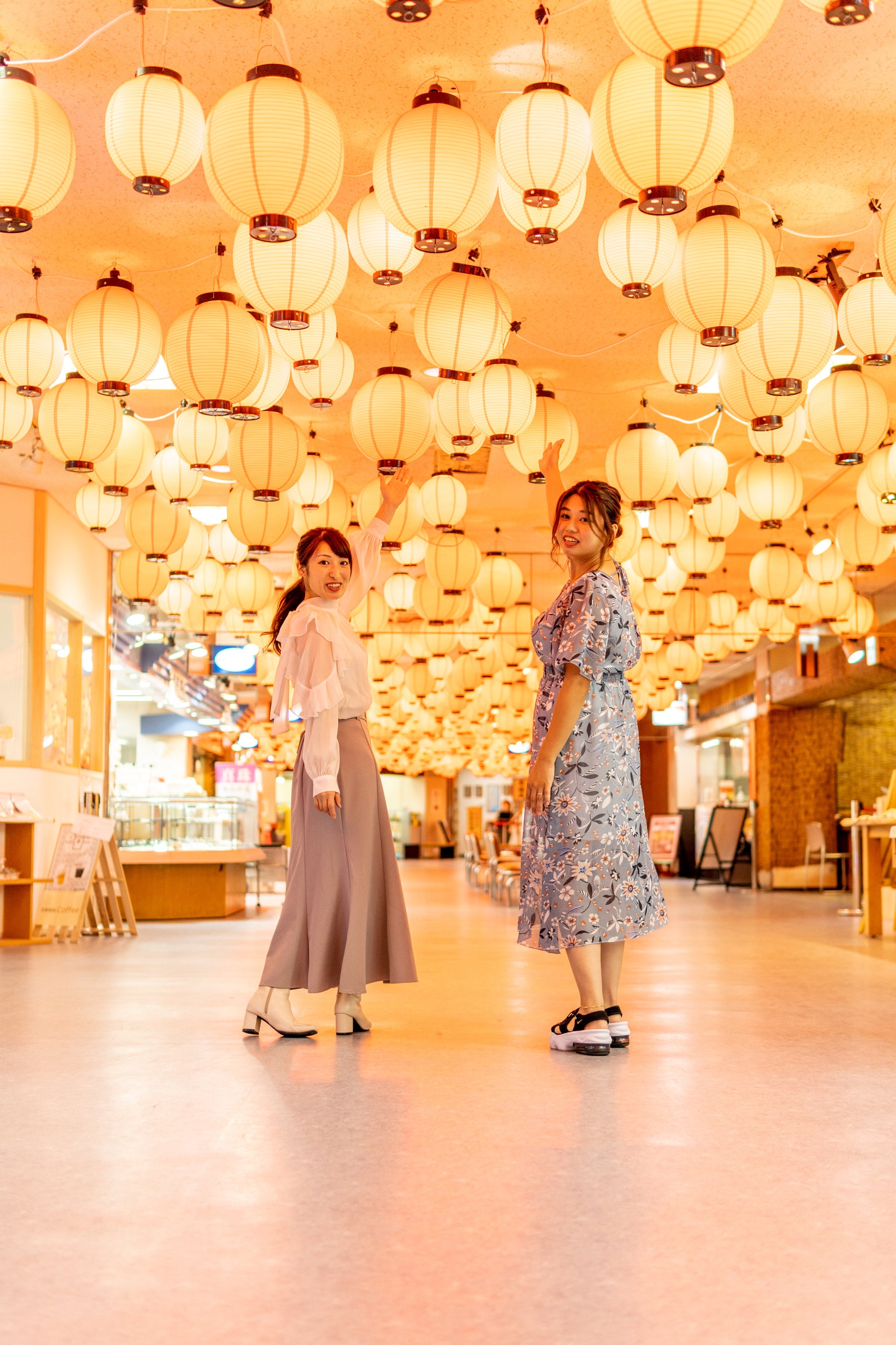 夫婦円満や良縁祈願など、恋愛のパワースポットとして注目される「夫婦岩」への参道となっている併設ショッピング施設「伊勢夫婦岩めおと横丁」。館内に入ると大小約1600個のちょうちんがお出迎えをします。SNS映えする写真スポットや、伊勢ならではのグルメ・アクティビティなどがが目白押しです。地元名産のお土産探しにもぴったりな、伊勢志摩最大級の屋内型ショッピング施設でもあります。