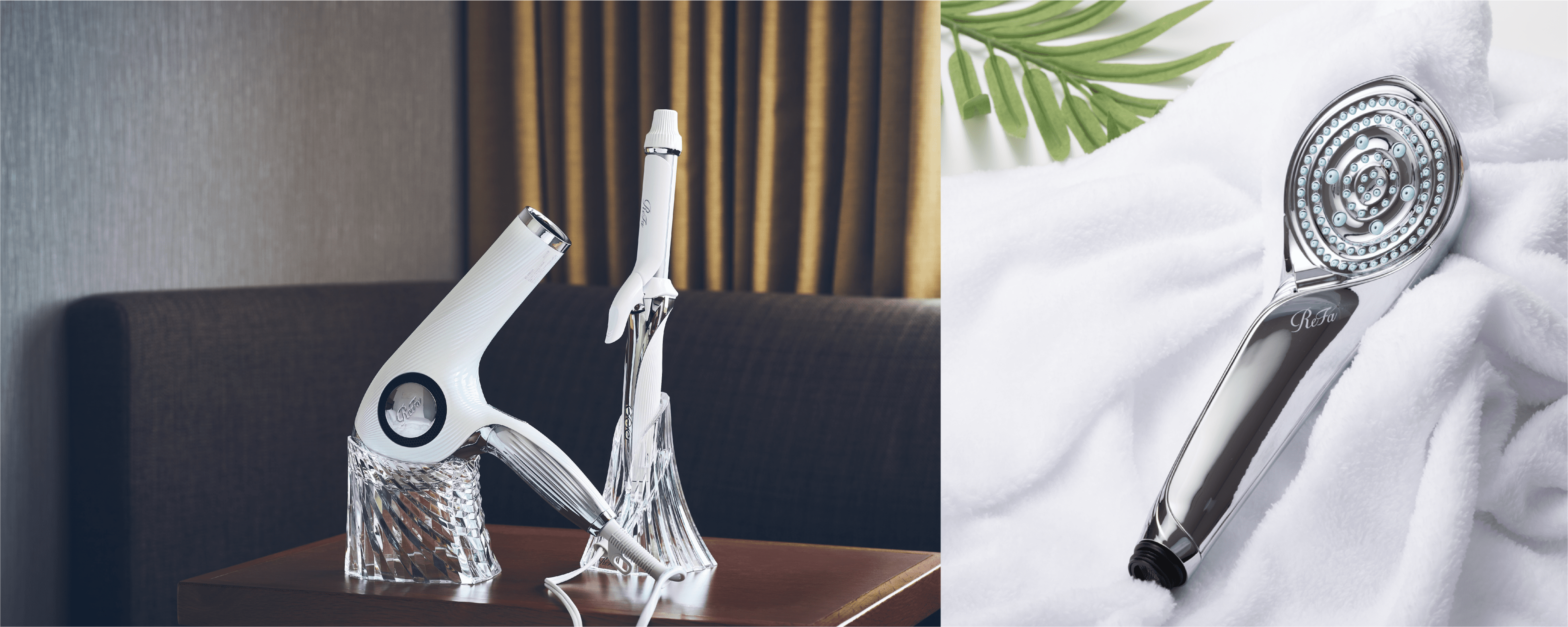 レディースフロアは今話題のReFaシリーズのお部屋に生まれ変わります。シャワーヘッド&ドライヤーのセットで肌本来の美しさを引き出すReFa体験をお楽しみください。