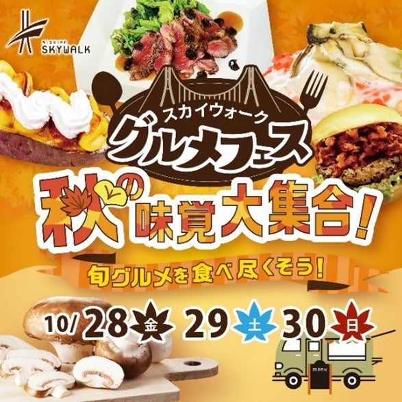 大人気イベント「スカイウォークグルメフェス」が秋の味覚をテーマに、秋深まる雄大な景色を眺めながら、きのこや牡蠣などの秋グルメが堪能できます。