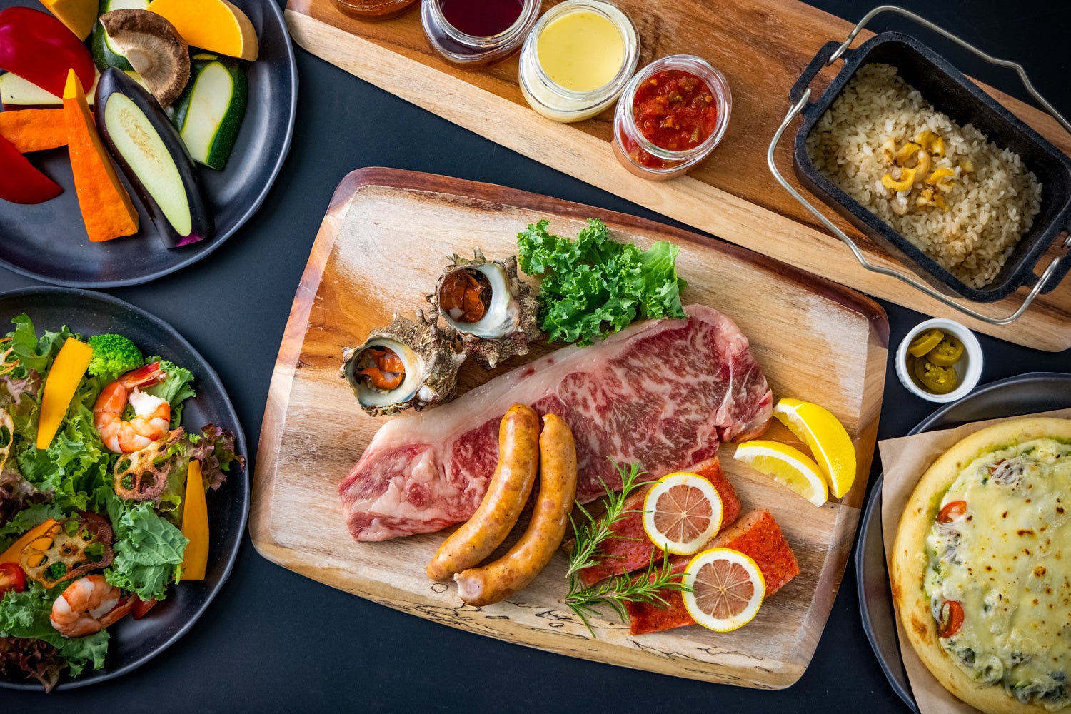 名物の三浦サザエや湘南しらす、地元で獲れた新鮮な野菜など、地産の豊かな食材はもちろん「循環型農法」で作られた野菜や、海の資源を守りながら水産物をおいしく食べる「ブルーシーフード」など、環境に配慮したサステナブルな食材を使用したBBQを用意しております。プライベートテラスで波音や潮風を感じながら絶景サンセットと共に、非日常空間で愉しむ料理は格別な味わいです。