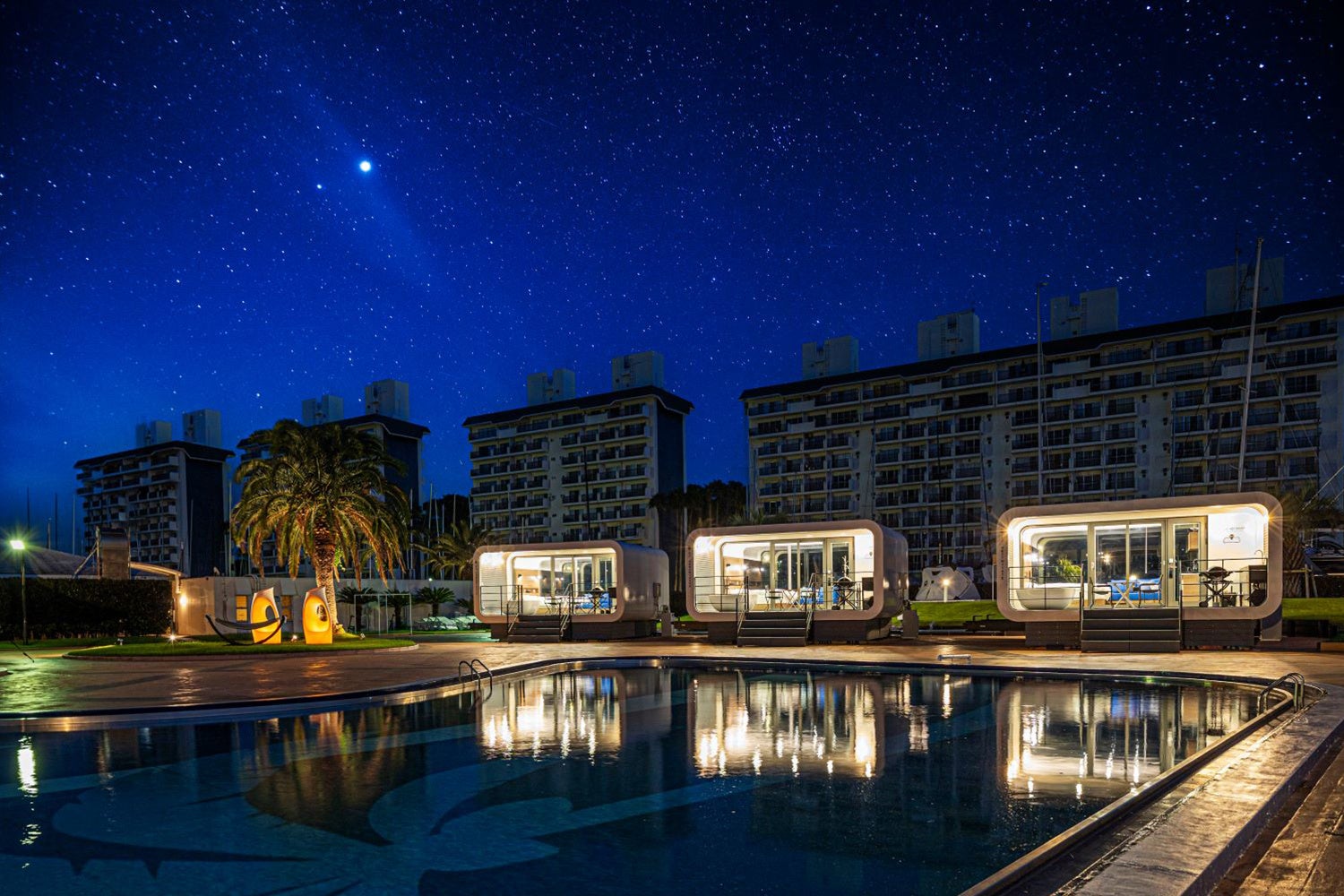 リビエラシーボニアマリーナでは、近未来的な丸みを帯びたフォルムの「Standard SPACE」を4棟配置。