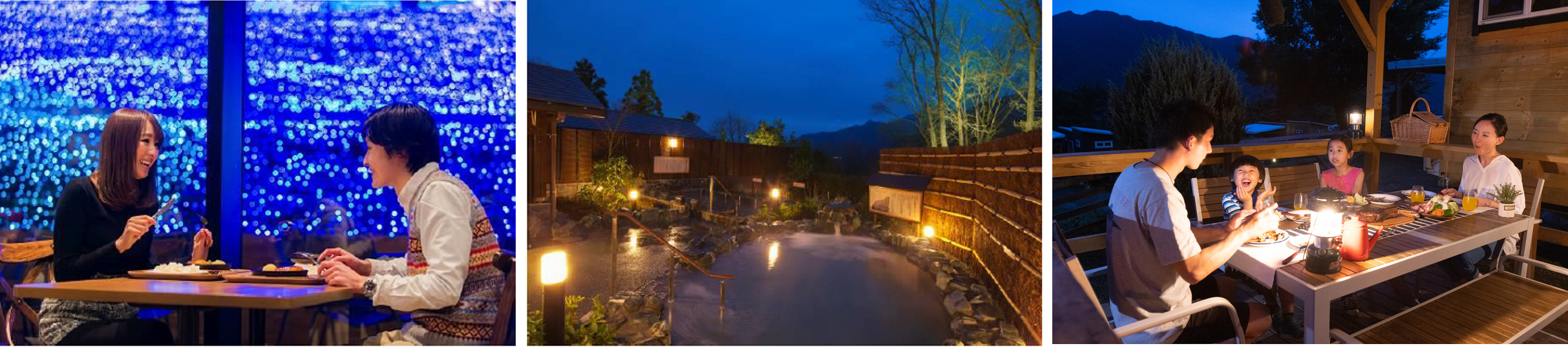 ■食事や温泉、キャンプなど夜の楽しみも充実