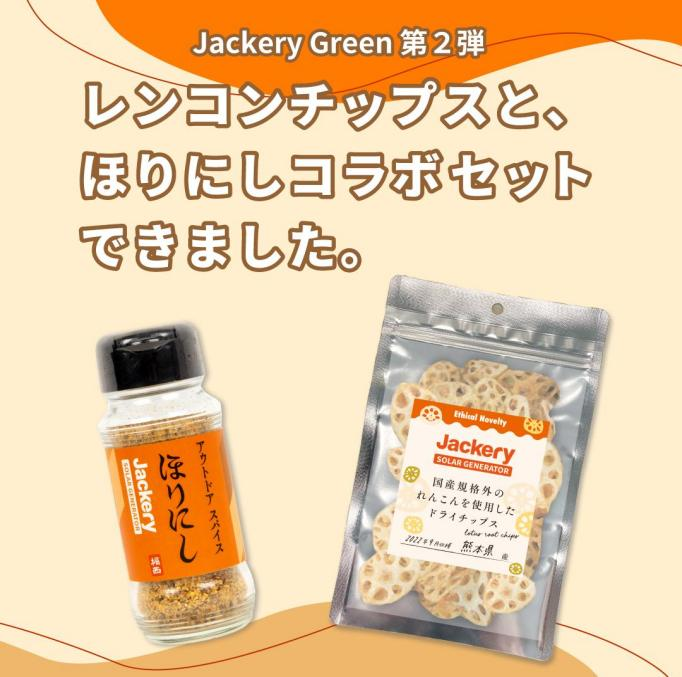 今回は熊本県「カワカミ蓮根」の規格外の蓮根50kgを使った「レンコンチップス」を作りました。また、合わせてJackeryと人気のアウトドアスパイス「ほりにし」のコラボ商品もお送りさせていただきます。ぜひレンコンチップスにかけてお召し上がりください。