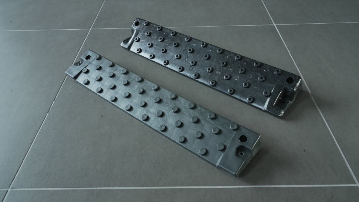 旧タイプの山道階段(レールート)は、踏み板を縦に連結させることが可能な構造で、大雨などの土砂災害の際にも階段が残りやすい設計で、優れた発明として発明奨励賞も受賞していた商品。また、メインのお取引先は九州電力など、山の鉄塔の整備点検用の巡視階段という用途でした。