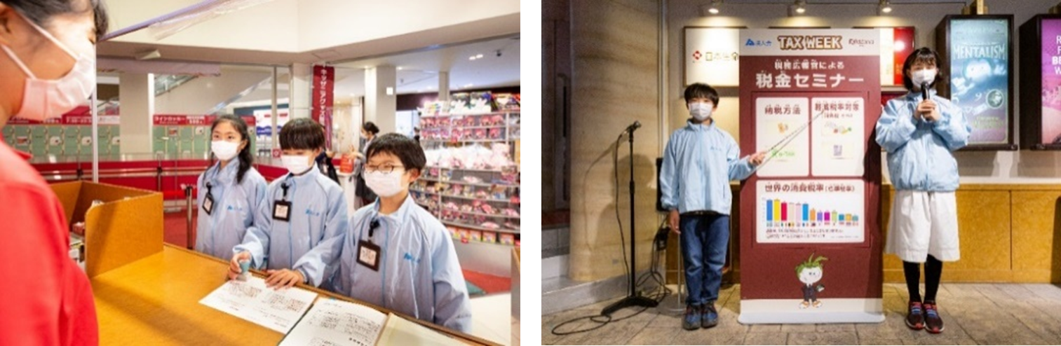 左:2021年の「税務調査」体験の様子/右:2021年の「税務広報」体験の様子