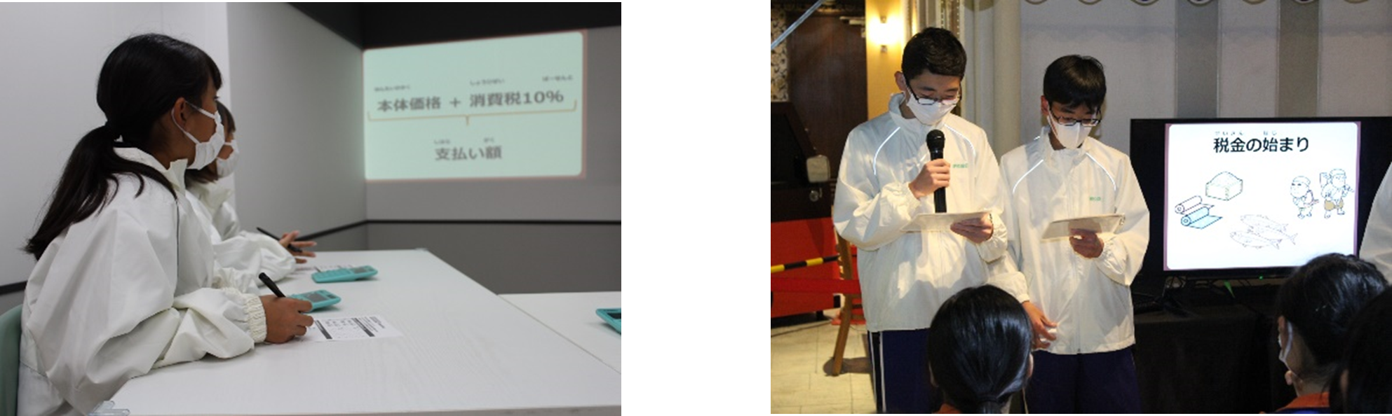 左:2021年の「税務調査」体験の様子/右:2021年の「税務広報」体験の様子