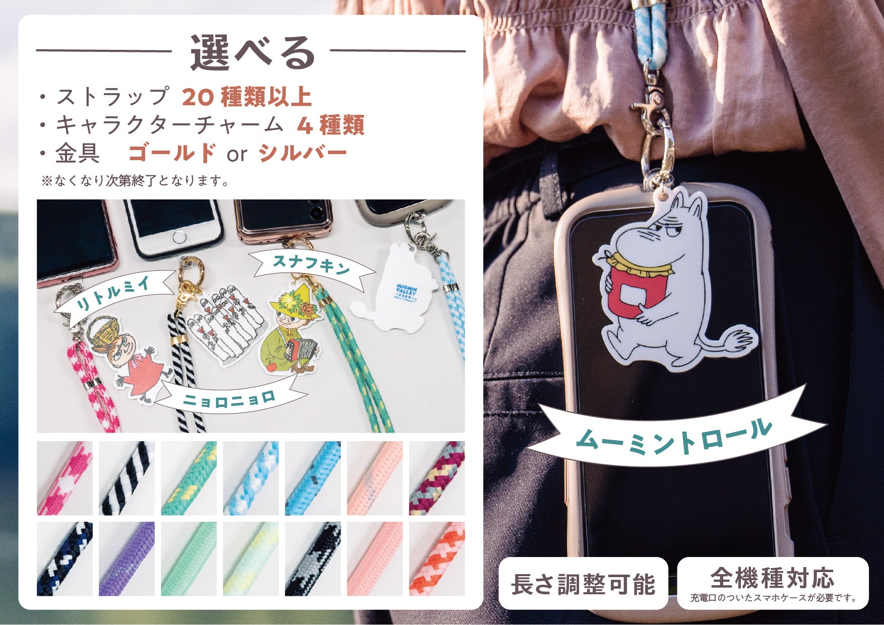 4種類のキャラクターチャームと、20種類以上の紐、2色の金具からお好きなものを組み合わせてつくるスマホショルダーです。人気の柄は売り切れ必至!なくなり次第終了です。