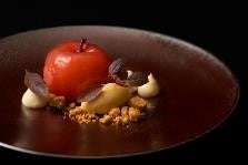 りんごはコンポートやジュレにアレンジし、キャラメル風味のアイスクリームやソースをプラスしました