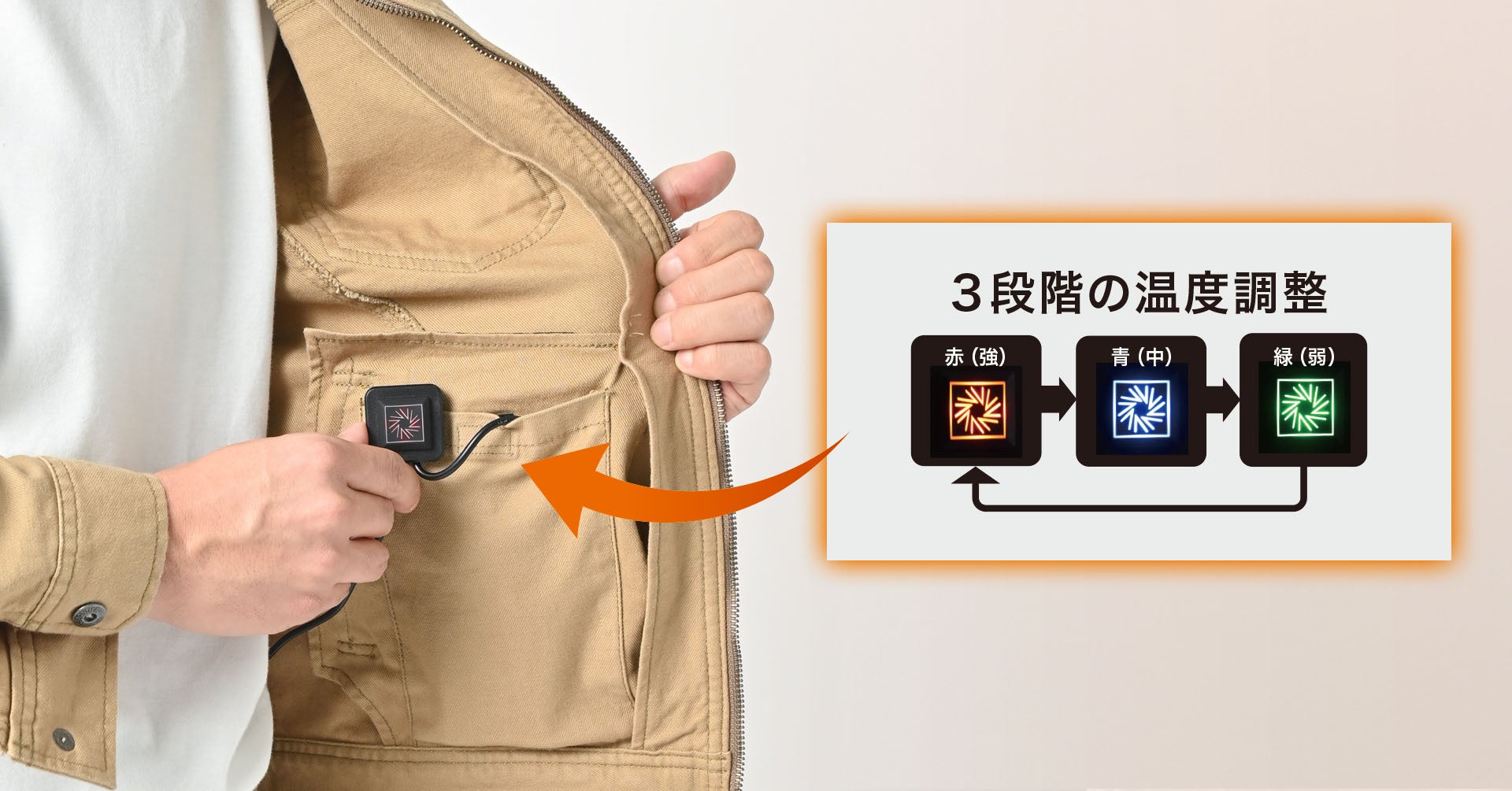 ご使用のバッテリー、着用条件、環境などの違いに応じて稼働時間が異なります。