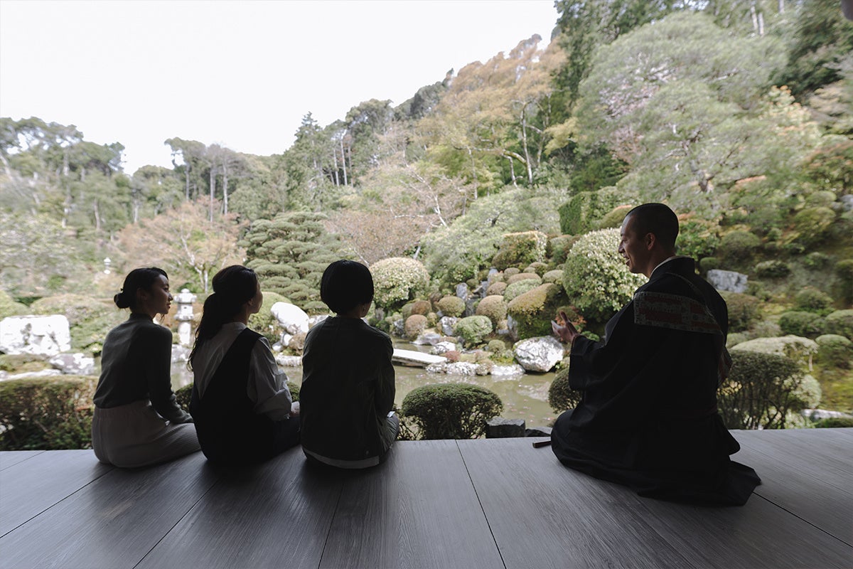 本体験は、少人数で坐禅と法話、庭園の自由拝観を楽しめるWabunka限定プラン。特別な場所をゆっくりと贅沢に堪能できます。通常拝観時間外の開門により実現しました。