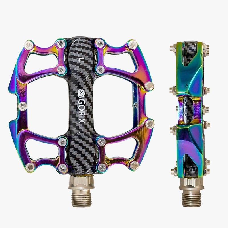 ●GORIX カーボン柄軸フラットペダル オイルスリック GX-Fi777