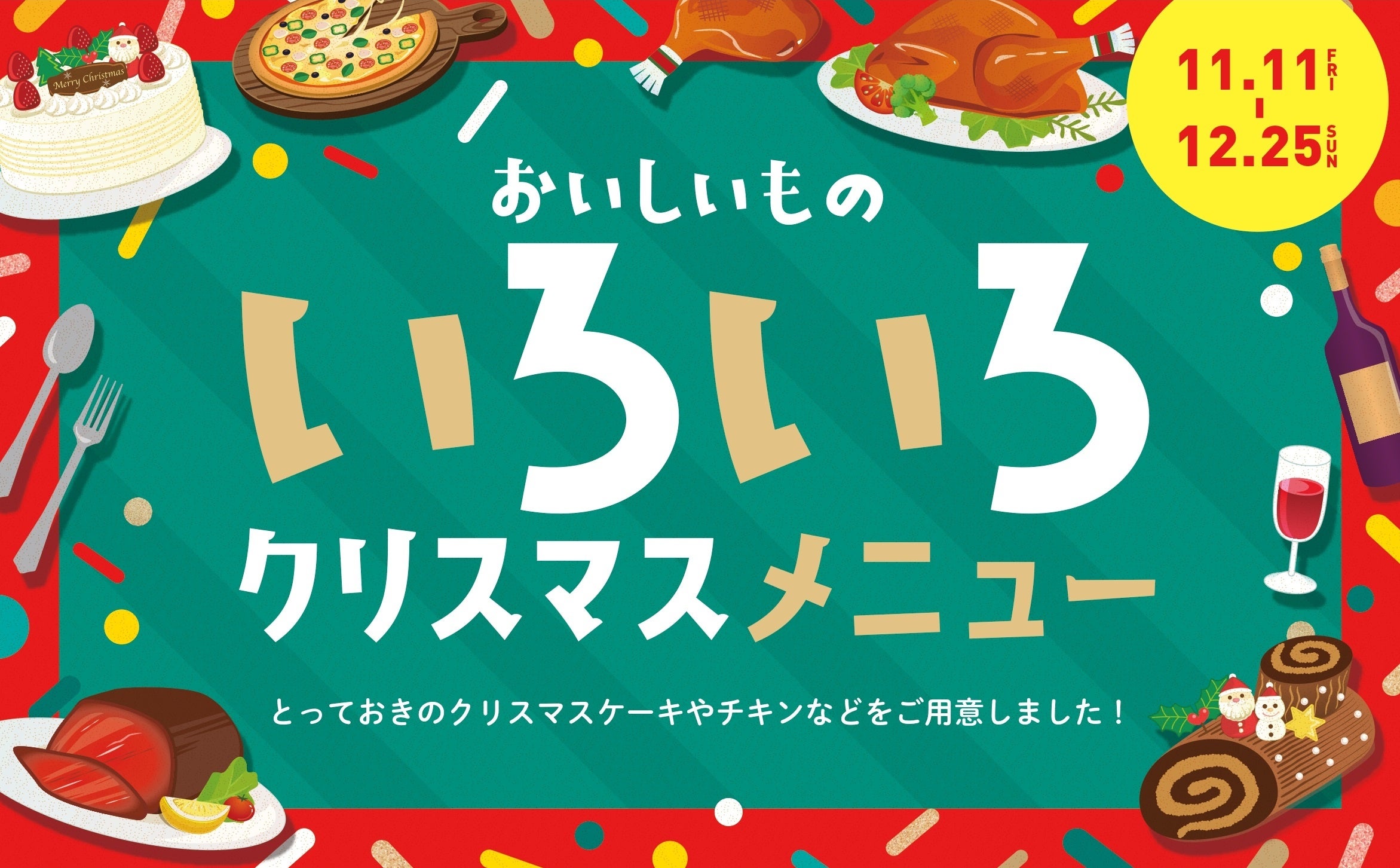 施設内の飲食店では、この時期限定のクリスマスケーキやオードブルなど、さまざまなメニューを取り揃えています。店舗内でのご飲食はもちろん、事前予約可能なテイクアウトメニューもお楽しみいただけます。
