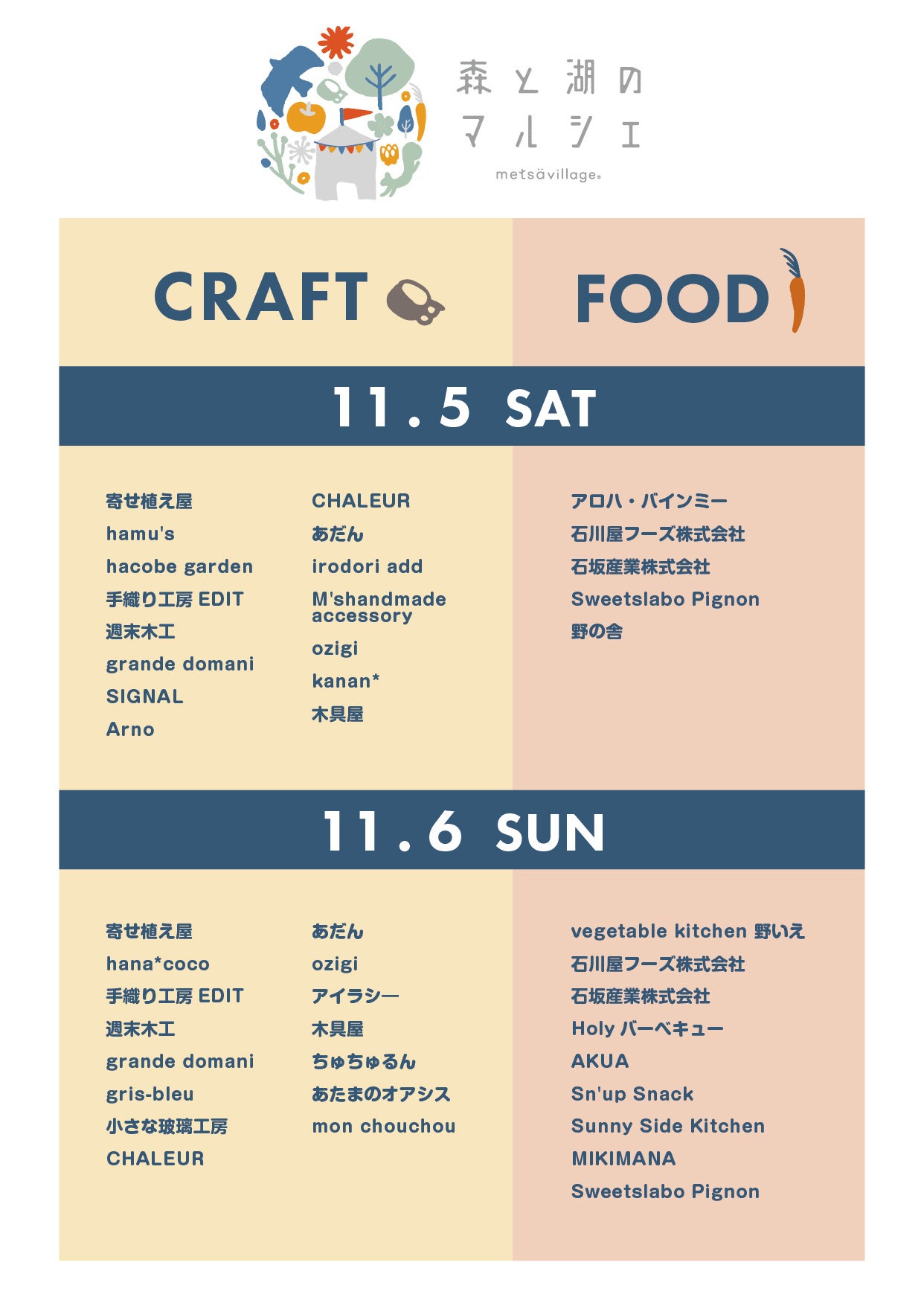 うつりゆく季節を感じながら「森と湖のマルシェ」で、のんびりとしたひとときをお過ごしいただければ幸いです。
