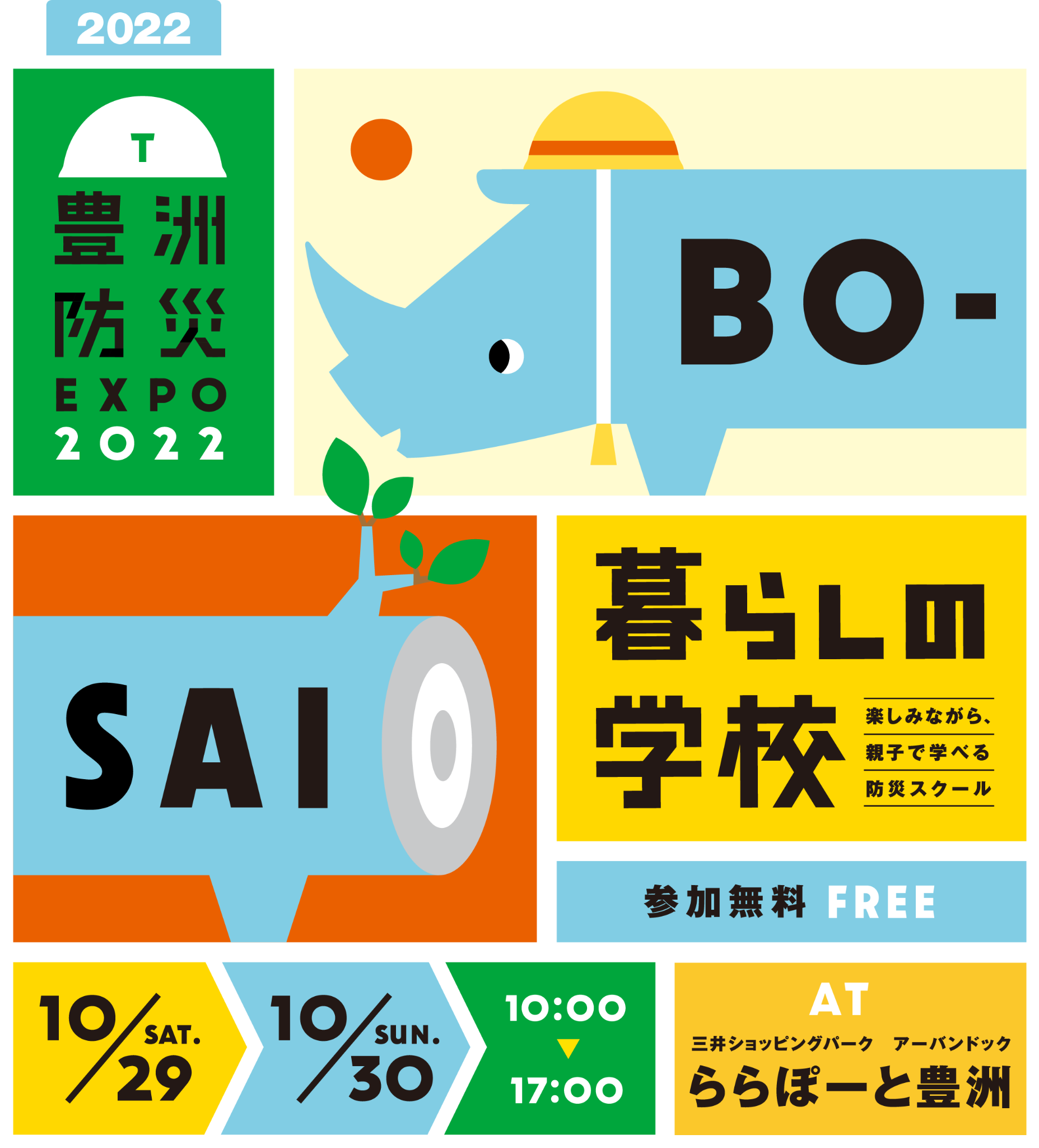 「豊洲防災 EXPO BO-SAI 暮らしの学校」は、今年で 12年目となる豊洲地区恒例の防災のお祭りです。「暮らしの学校」という名前のとおり、日常生活の中で無理なく取り組める防災の知識や技を、担当スタッフが対話型・体験型で紹介するイベントです。