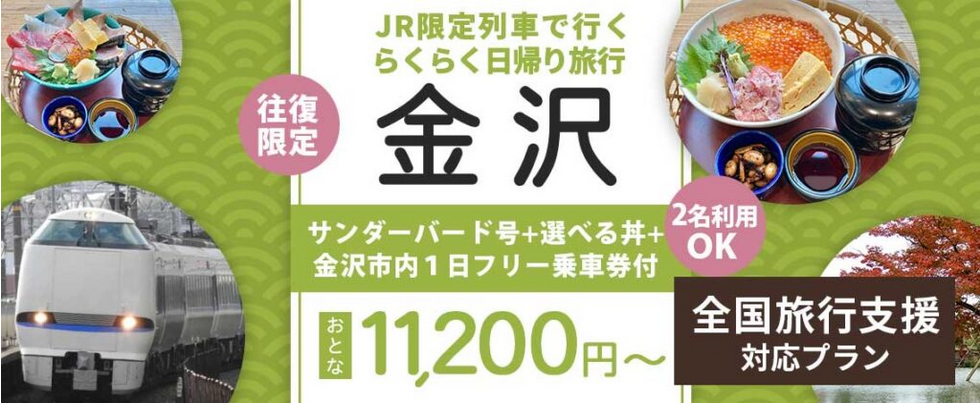 関西発《日帰り》JR限定列車で行く!日帰りプラン金沢★選べる丼+金沢市内1日フリー乗車券付き【2名様からご利用OK】