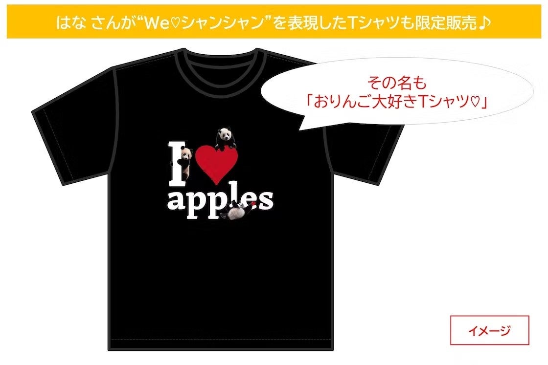 そして、私が持っている、ある動物園の「I ♡ PANDAS」Tシャツにインスパイアされて、シャンシャンが大好きな「おりんご」とちびシャンの姿をコラージするデザインを描きました。