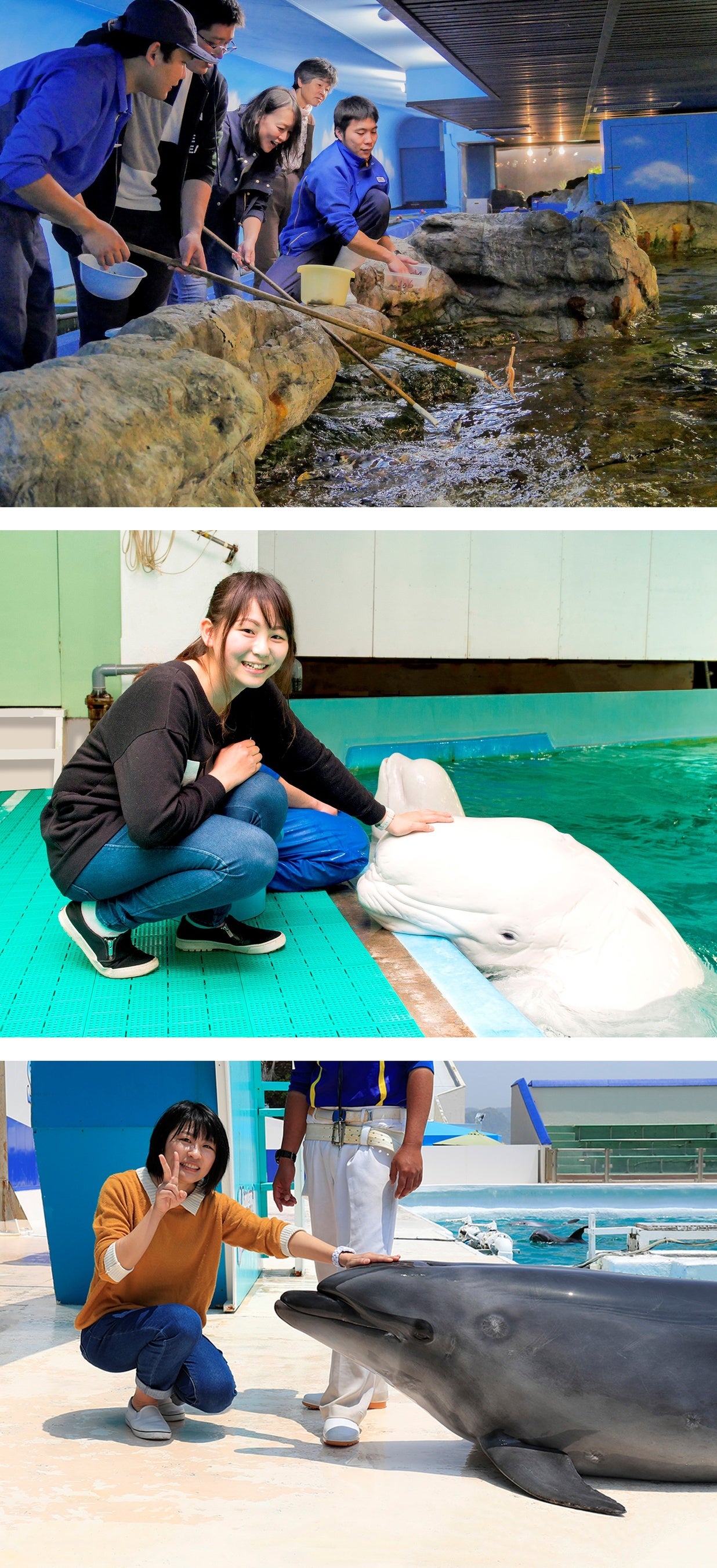 本プログラムでは、日本で唯一、直接シャチに触れることができ、シャチへの給餌体験もできる「シャチとのふれあい体験」をはじめ、飼育員さながらに給餌棒を使って行う「エイ・サメ類への給餌体験」や、普段見ることのできない水族館の裏側を覗く「水族館まるごとウォッチング」、真っ白なベルーガのやわらかいおでこにさわる「ベルーガにタッチ」、イルカと間近でふれあい、ハンドサインでジャンプの指示を出すことができる 「イルカトレーナー体験」など、贅沢で魅力にあふれた体験を用意しました。