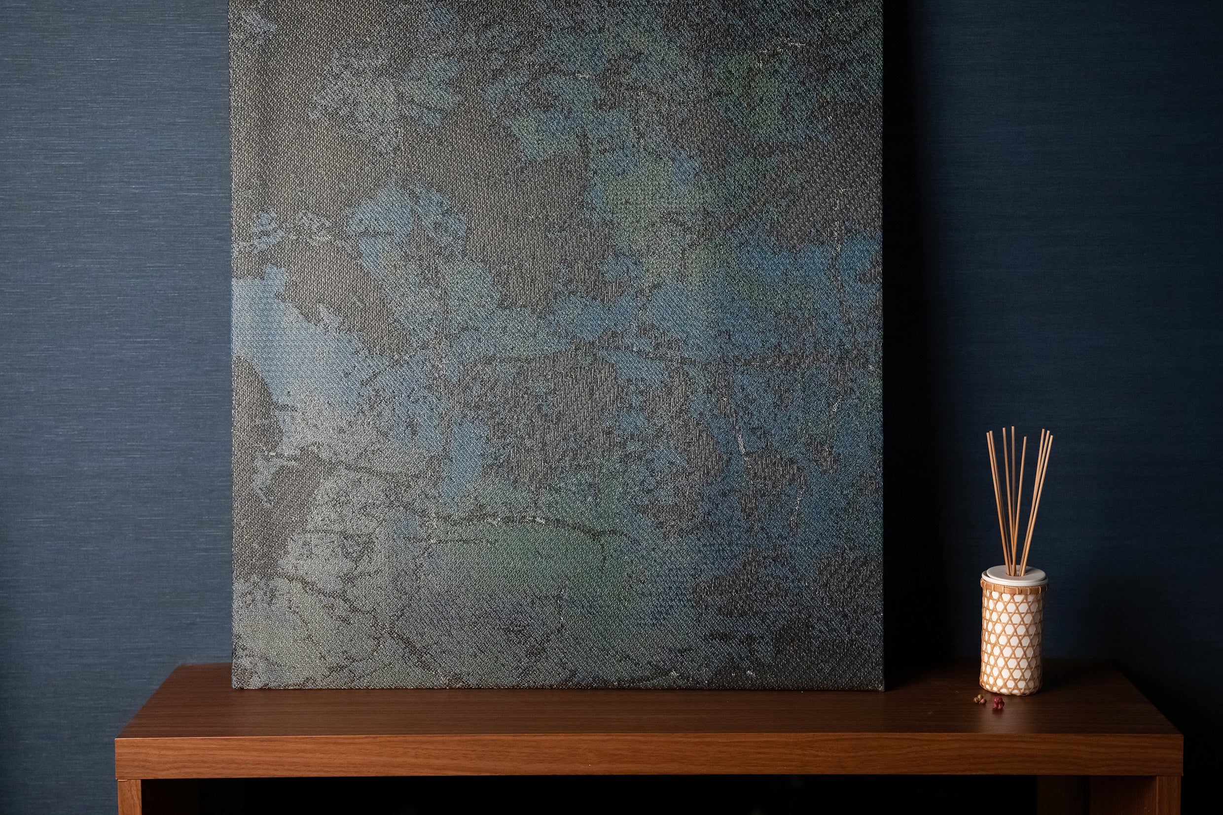 西陣織の技術を活用しつつ、唯一無二の“ワイヤー”で表現したパネルも展開いたします。京丹後で織られ、その特異な技術は世界のどこにも他にないものとなり、光沢感とこれまでに無い質感が人々を新たな工芸の世界に誘います。