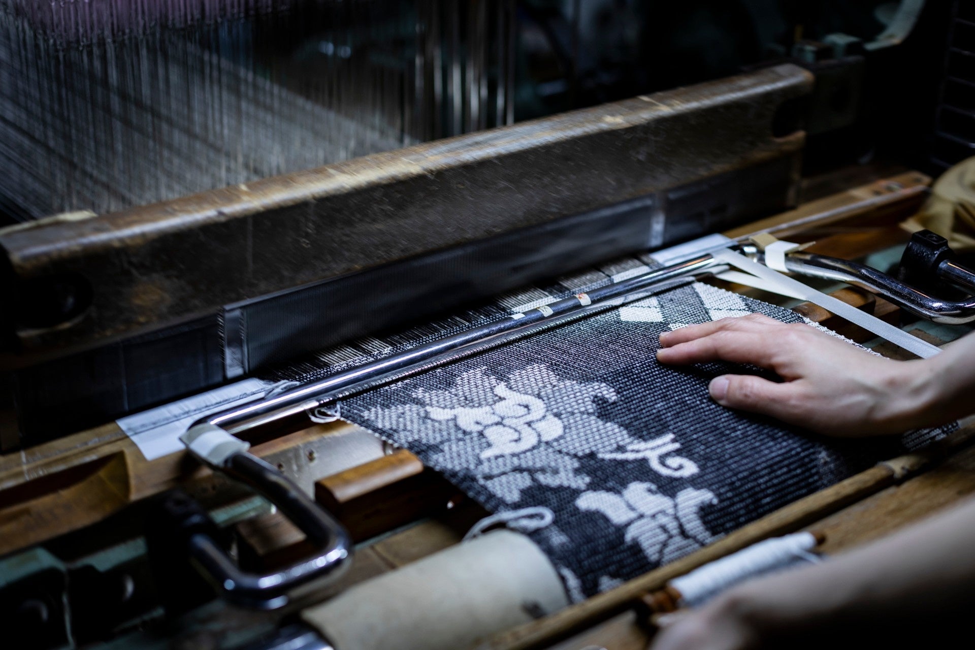 小幅織物で世界最高水準の製織技術を自負する「西陣織」の織元。伝統技術だけでなく京都市オスカー認定を受賞した独自の技術を駆使し、和装での経験と実績を元に、広幅織機による新しいテキスタイルの開発に取り組んでいます。