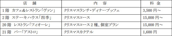 JRホテルクレメント高松(高松市浜ノ町1番1号 総支配人:辻(※)田 浩一)では、レストラン4店舗にて、贅を尽くしたディナーコースやクリスマスカクテルを、12月17日(土)から25日(日)の期間限定でご用意します。