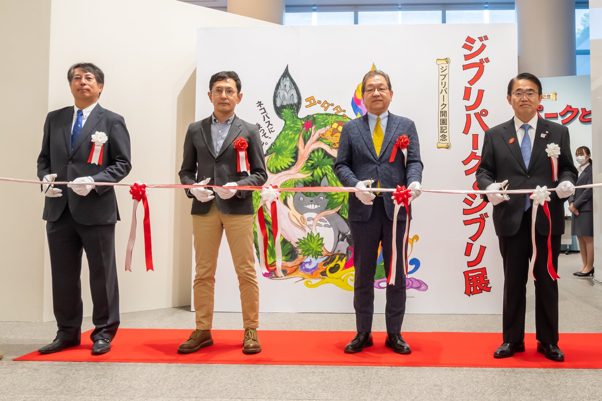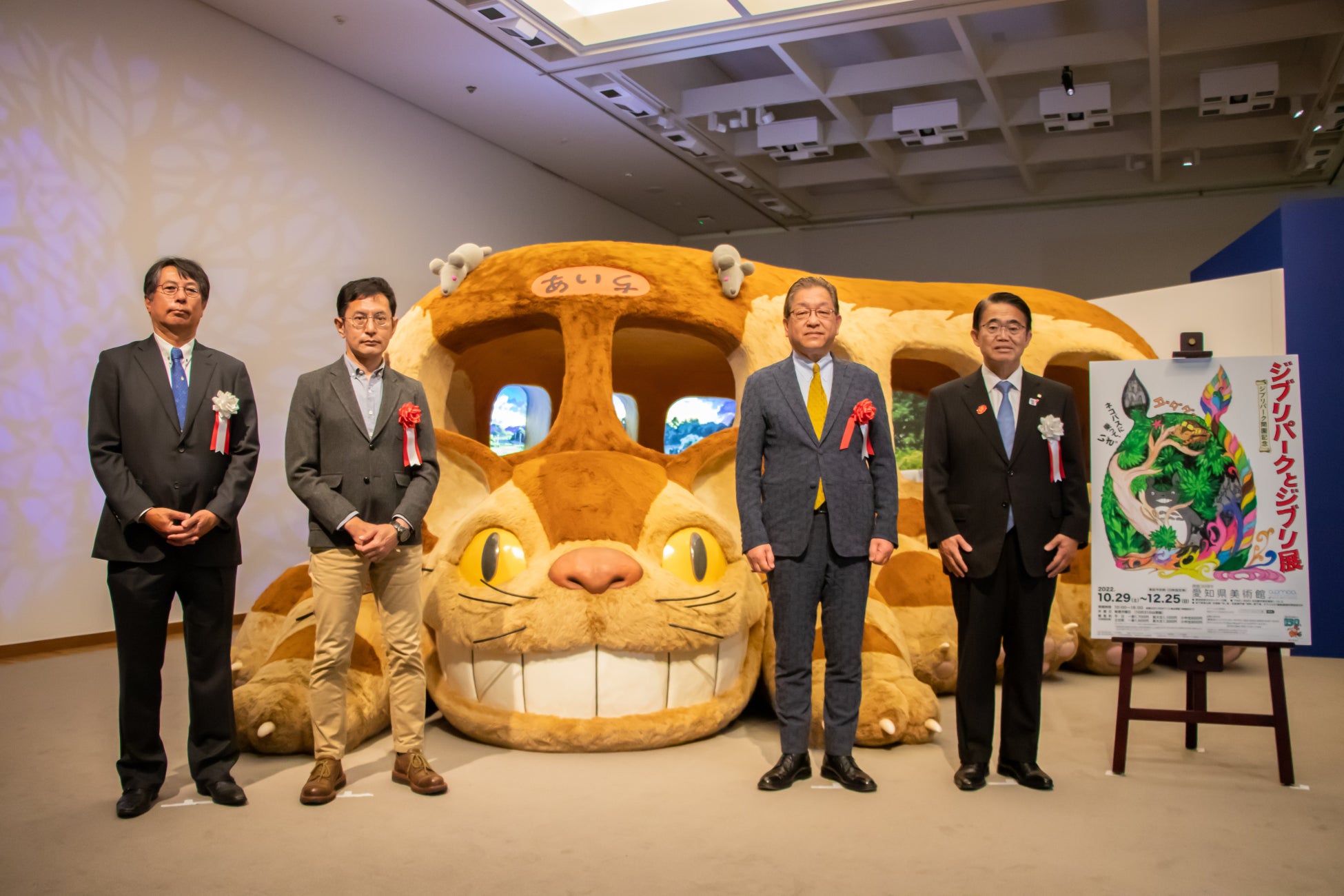 開幕に先駆け、10月28日(金)に愛知県美術館にて開会式、内覧会、トークイベントを開催しました。開会式には、主催者を代表し、愛知県の大村秀章知事と中日新聞社の大島宇一郎代表取締役社長が出席したほか、本展に企画制作協力したスタジオジブリから星野康二代表取締役会長兼社長、そしてジブリパークの制作現場を指揮する宮崎吾朗監督が参加。また開会式前には宮崎吾朗監督によるトークイベントも実施しました。