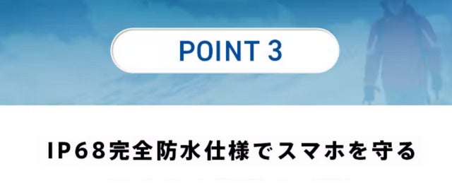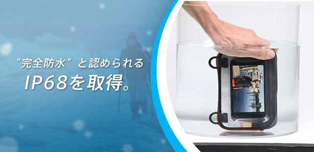 国際的防水テスト“IPコード”で「水中に沈めても水の浸入が無い」“完全防水”と認められるIP68を取得。