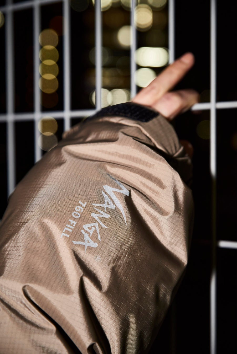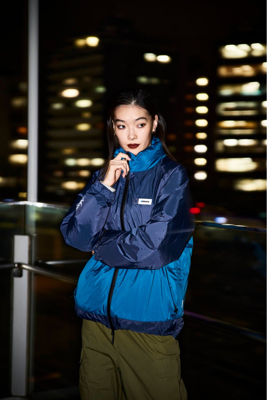 また生地には多孔質ポリウレタン防水コーティング加工を施したナイロン生地で、高レベルの防水透湿性能をもっている“オーロラテックス”を使用。カラーはブラック、ネイビー、ブラウンの3色展開となっており、表地はどのスタイルにも合わせやすいカラーで、裏地には表地とは異なるカラーをそれぞれ採用しています。左胸にシリコンタイプのatmosロゴと、右袖にはリフレクターでNANGAのロゴを配置した別注ならではの1着となっています。