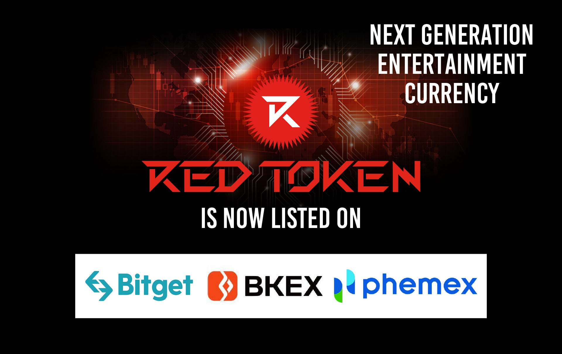 RED TOKEN ECONOMY PROJECT (REDトークンエコノミー・プロジェクト)を主宰し、NFTやメタバースなど最新技術を駆使した次世代エンターテイメント体験の提供の実現を目指すフィーダ株式会社 (本社:東京都港区、代表取締役社長:原 康雄 以下、フィーダ) が管理する暗号資産 RED TOKEN (ティッカーコード「RED」*) は、MEXC Global、AAX、BingX 、Gate.io、BitMart、KuCoin、Coinstore、LBank、XT.comへの上場に続き、革新的な商品とソーシャルトレーディングサービスを特徴とする「Bitget」、800万人以上のユーザーにサービスを提供している「BKEX」、ウォール街での実務経験を誇る創業チームで運営する 「Phemex」 に上場いたします。