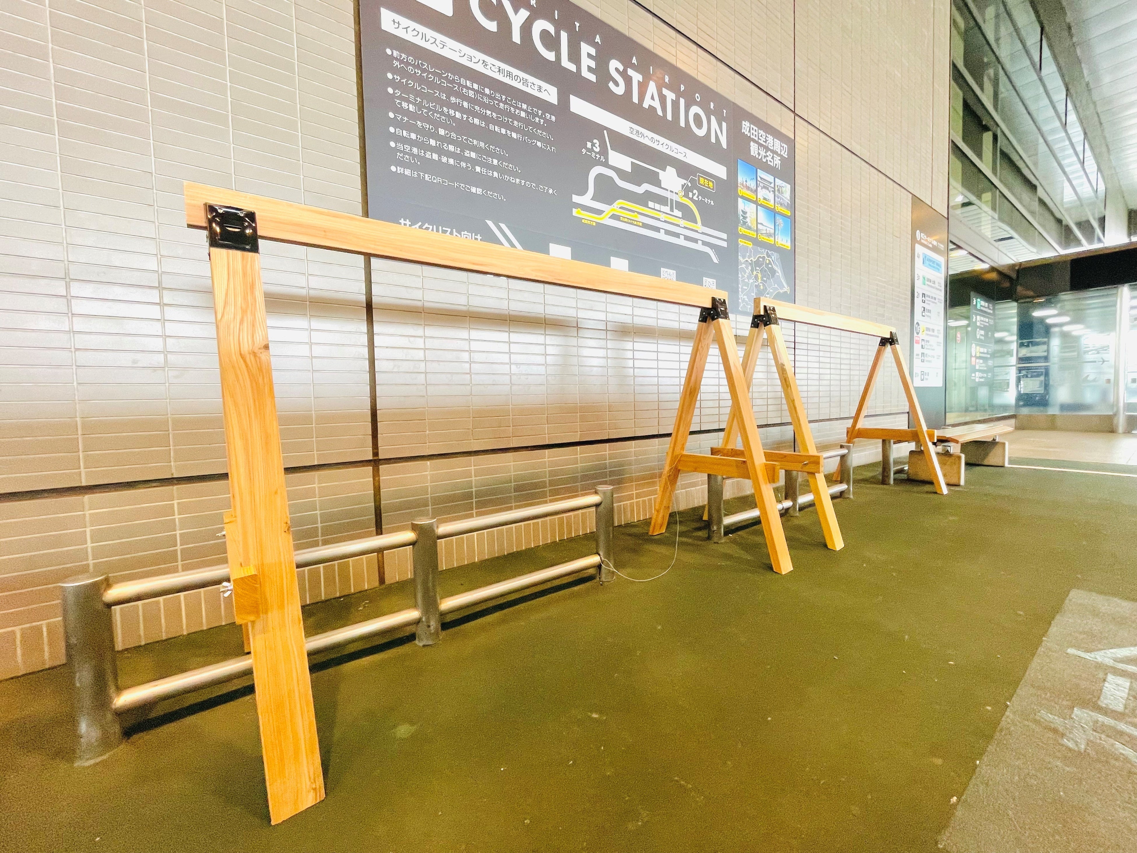 なお、弊社が策定したサステナブルNRT2050の取り組みの一環として、「成田空港の更なる機能強化」により発生した伐採木を活用しサイクルラックを設置いたしました。引き続き、脱炭素社会の実現に向けた取り組みについても推進して参ります。