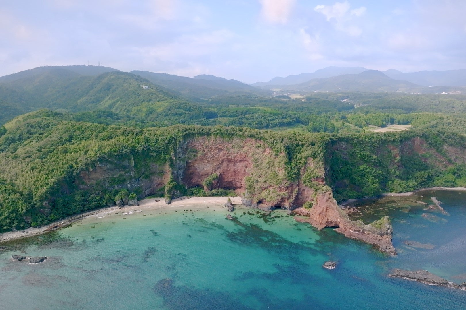 海食崖や海食洞が約1kmにわたって続く景勝地。