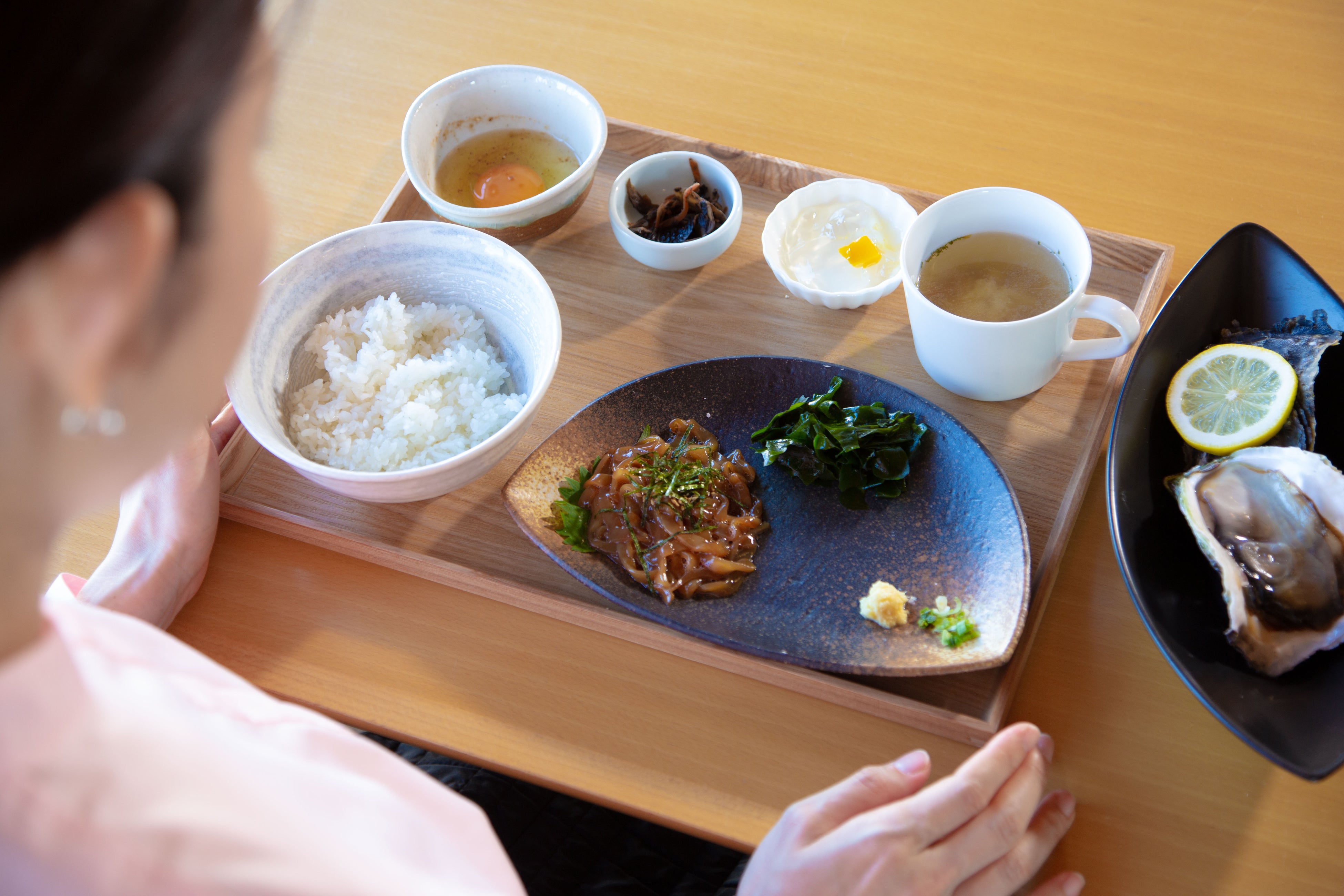 海士町(あまちょう)のフェリー乗り場2階にあるレストラン。フェリー乗り場から直結のため、フェリーが動いている姿も間近で見ることができます。綺麗な海を目の前に、島の新鮮な食材をいただける定食のメニューが豊富です。