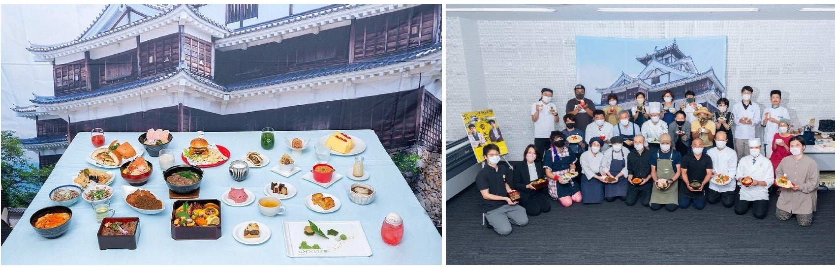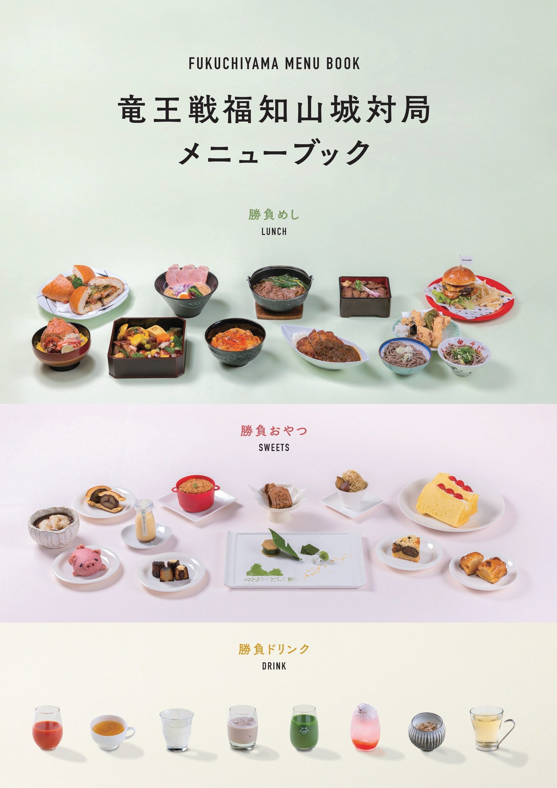 竜王戦福知山城対局実行委員会は、2022年11月8日(火)・9日(水)に福知山城で行われる第35期竜王戦第4局にて、藤井聡太竜王と挑戦者の広瀬章人八段の「勝負めし」「おやつ」「ドリンク」候補となる公募30品をまとめた「竜王戦福知山城対局メニューブック」を作成し、お披露目会を10月31日(月)に福知山城で行いました。