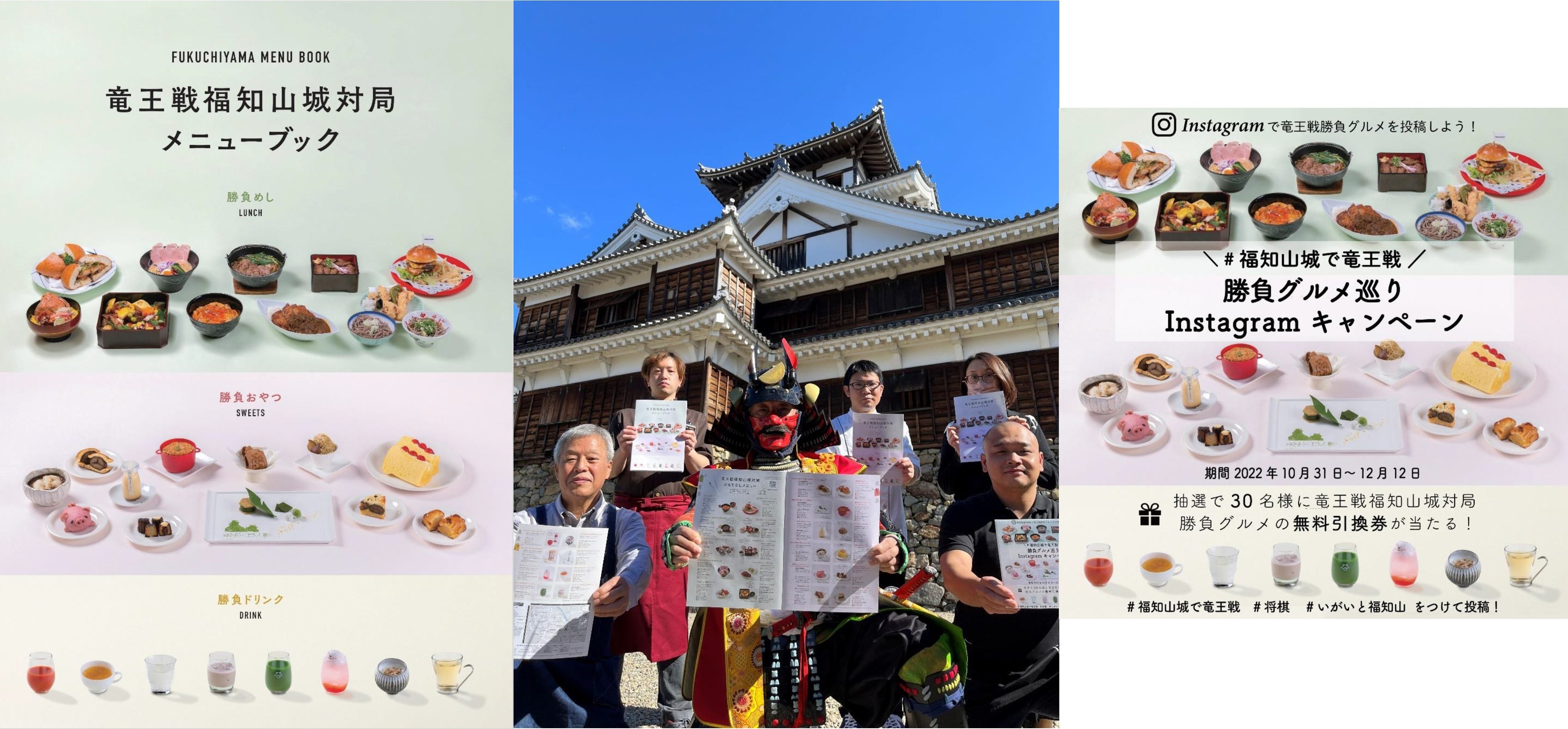またメニューブック完成を記念して、10月31日(月)からインスタグラムを活用したハッシュタグキャンペーン「#福知山城で竜王戦 勝負グルメ巡りInstagramキャンペーン」を開始します。メニューブック掲載品の写真をインスタグラムで「#福知山城で竜王戦」など指定のハッシュタグをつけて投稿した人の中から、抽選で30名に各品の無料引換券をプレゼントします。メニューブックを持ってぜひ竜王戦勝負グルメを巡ってください。