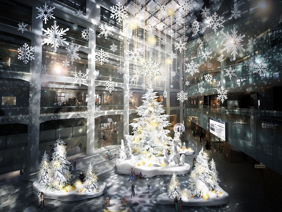 開業から9年目となる「WHITE KITTE」のテーマは、「KITTEの森 Winter Forest Christmas ~自然からの贈り物~」。本物のもみの木を使用した、全長12mのツリーが出現。高さの異なる9本のツリーに雪の結晶が降り注ぎます。ツリーの傍には、幻想的な空間を体験できる、直径3mの巨大スノードームを設置。“白い森”に響き渡るクリスマスの名曲に合わせた光のクリスマスショーも必見です。