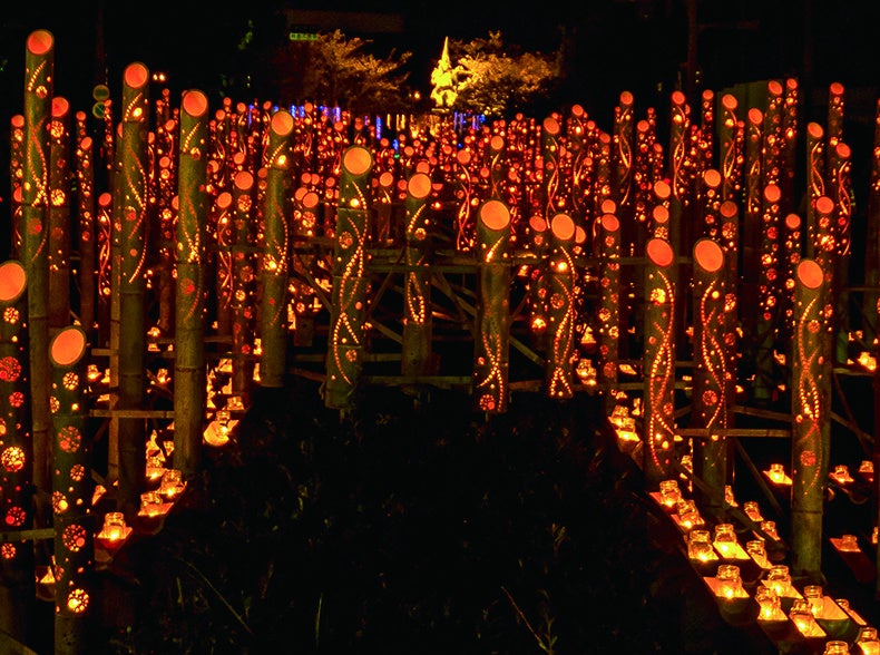 里山を荒廃させる竹を伐採し、有効活用する「竹あかり」での装飾を実施。