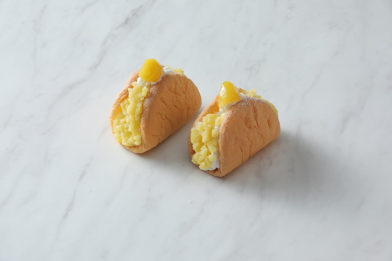 ふんわりとしたオムレット生地に、クリームとマロンの粒を挟んだスイーツ。昔は洋梨やバナナを挟むこともありました。