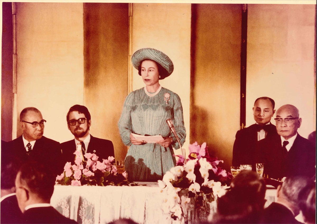 1975年5月8日、経済五団体主催により、「エリザベス二世女王陛下、エディンバラ公フィリップ殿下歓迎午餐会」が東京會舘ローズルームにて行われました。東京會舘が名実ともに国際的な社交場として広く認められた出来事であり、当時もご来舘後に「英国フェア」を開催するなど、大変な盛り上がりをみせました。