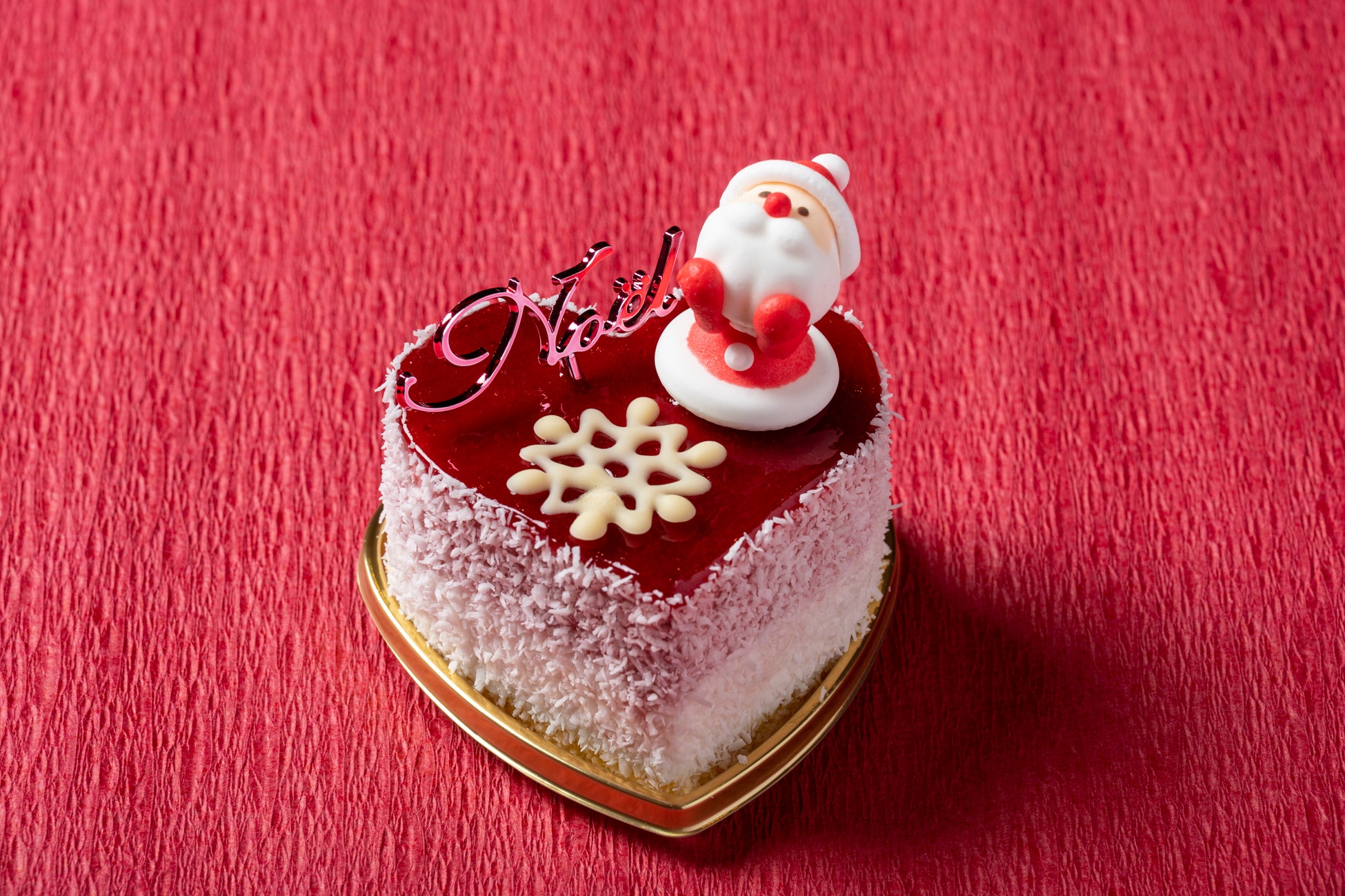 クリスマスは少し贅沢に大きめサイズで食べたいというスタッフの意見を取り入れ、オリジナルサイズのハート形で作られたココナッツとグリオットチェリーのムースケーキです。