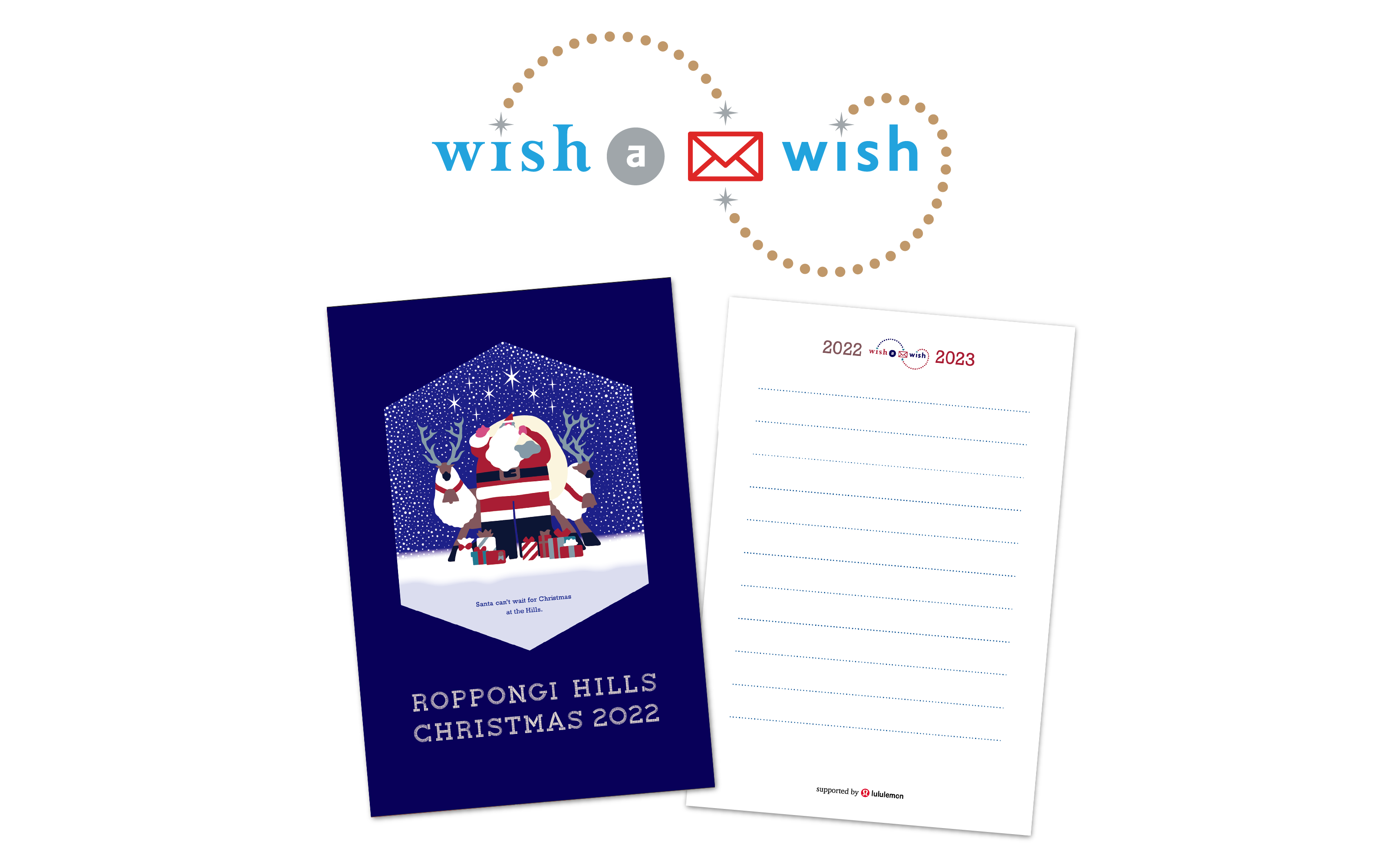 また期間中、毎年人気の「wish a wish ~大切な人へ、ハッピークリスマスのメッセージを~」をバージョンアップして展開。1年後に大切な人や自分自身に届くクリスマスカードに加え、今年は1年後に六本木ヒルズで受け取れるボイスメッセージも用意しました。さらに、ヒルズ カフェ/スペースでは2つのポップアップショップを展開するほか、六本木けやき坂連絡ブリッジにはリボンが象徴的なツリーも登場します。クリスマスムード満載の六本木ヒルズで、特別なひとときをお楽しみください。