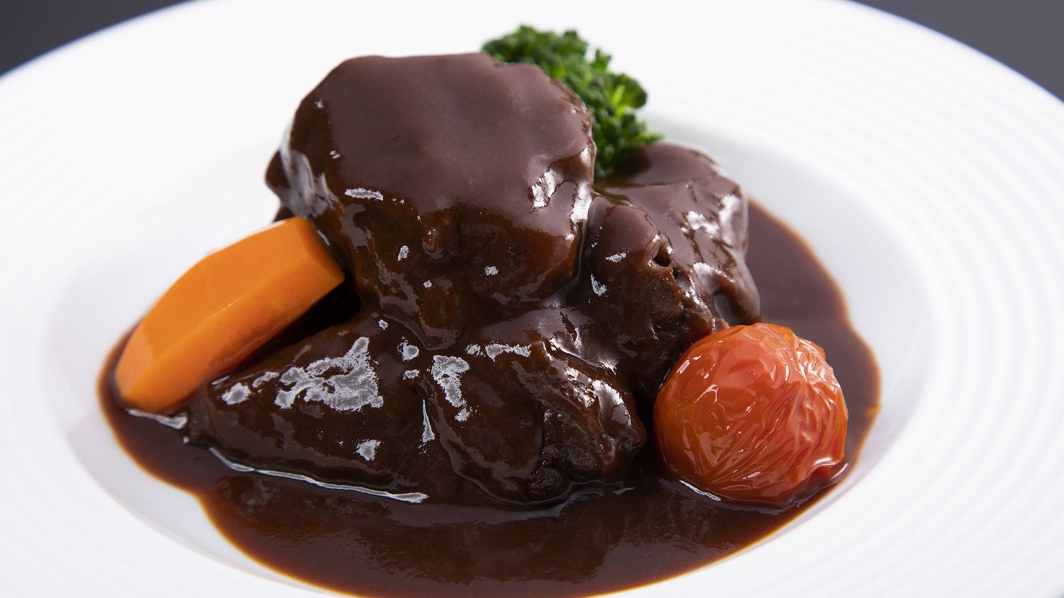 煮込み料理に最適といわれている宮崎牛スネ肉を使い、赤ワイン、フォンドボー、デミソースでじっくり煮込み仕上げました。