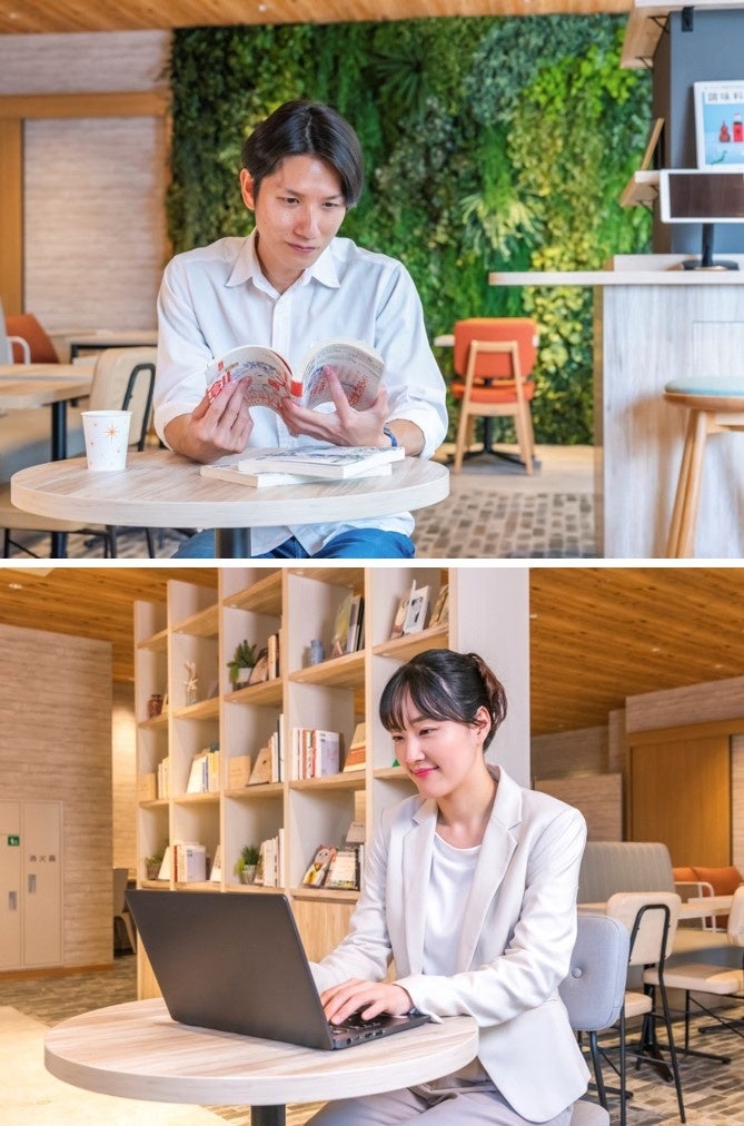 宿泊していなくてもComfort Library Cafeが無料で使えるサービス。Comfort Library Cafeは、Wi-Fiやコンセント、フリードリンク、100冊以上の本をそなえたホテル内のオープンスペースです。
