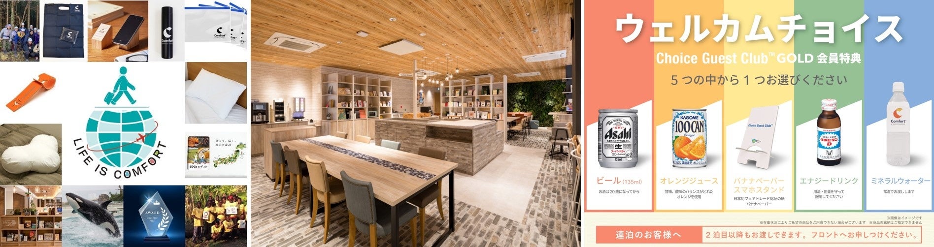 チョイスホテルズジャパンは、日本国内において北は北海道、南は沖縄まで全国各地でコンフォートブランドのホテルを展開しています。コンフォートブランドのホテルでは、ビジネスや観光に便利な立地、バランスよくヘルシーな朝食、オリジナル快眠枕「チョイス ピロー」をはじめとした快眠へのこだわりなど、充実したサービスを提供しています。2018年5月31日の世界禁煙デーには、全国に50軒以上の規模を展開するホテルとしては日本で初めて、全室禁煙化を達成しました。お客さまの旅がより実り多く、一人ひとりの時間を彩りあるものにしたいという思いから、ブランドコンセプトとして「Color your Journey. 旅に、実りを。」を掲げています。導入が進んでいるComfort Library Cafeは、プロが選書した地域にまつわる本を100冊以上ご用意。コーヒーや紅茶などのドリンクが飲み放題であるほか、Wi-Fiも充実しており、テレワークやくつろぎの場として最適です。小学6年生までのお子さまの添い寝での宿泊は無料であるなど、ファミリーでの滞在にもおすすめです。