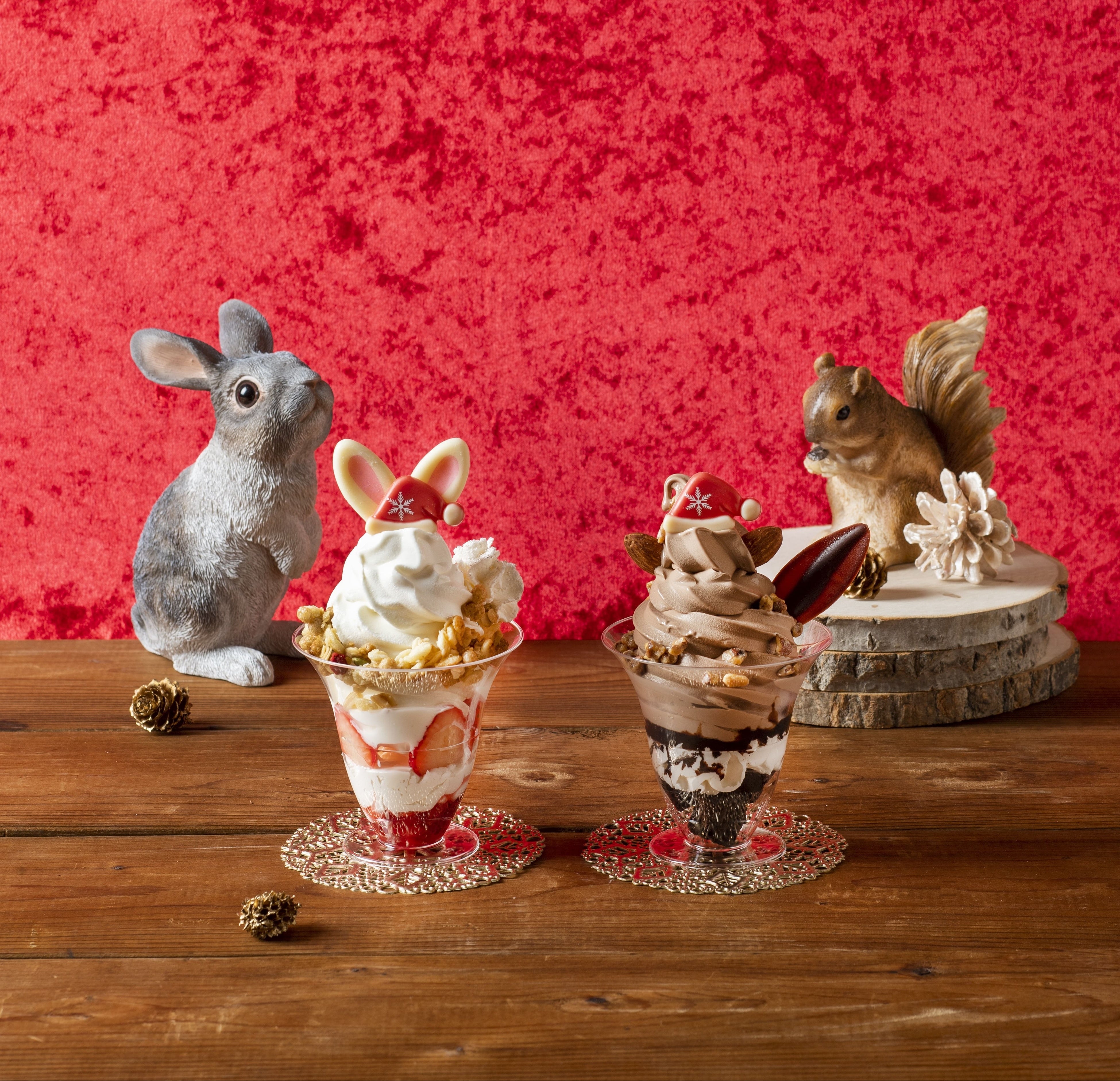 白い恋人ソフトクリームを使用し、可愛い動物たちに見立てたサンデーです。うさぎさんとりすさんどちらがお好みですか?