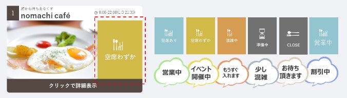 空席情報/混雑情報をセンシングし、リアルタイムで表示できるサービスです。センシング情報の活用により施設の混雑緩和や利用者の待ち時間削減、業務の効率化をサポートします。また「混雑を避けたい」という消費者ニーズに応えます。