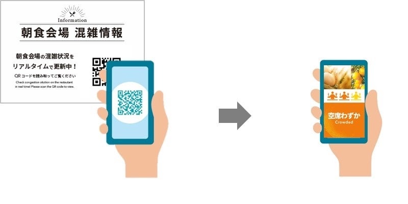 混雑状況可視化サービス「nomachi(ノマチ)®」の導入により、お客様はご自身のスマートフォンを利用して「nomachi(ノマチ)®」にアクセスすることで、朝食会場へ足を運ぶことなく客室にいながら混雑状況を確認することが可能になります。コンフォートイン那覇泊港、コンフォートイン京都四条烏丸など、観光目的で利用するお客様が多いホテルへ同サービスを導入することで、さらなる顧客満足度向上を目指してまいります。