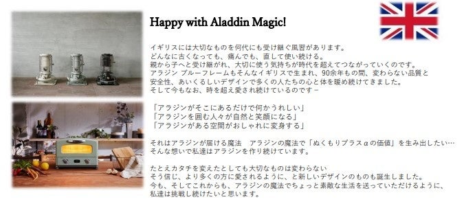 本イベントを通して、アラジンのある生活で、日常を今よりちょっと素敵に心地よい暮らしの空間を提案いたします。新商品、また定番の人気商品を直接お手にとってご覧いただける機会ですので、皆様のご来場を心よりお待ちしております。