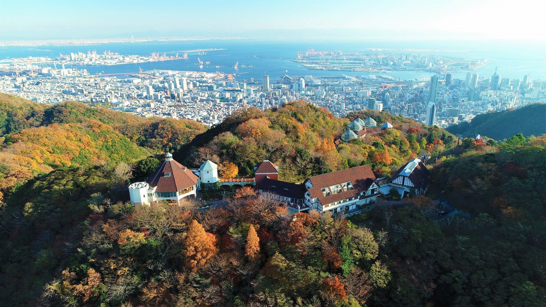 ロープウェイで神⼾の街並みを眼下に眺めながら、