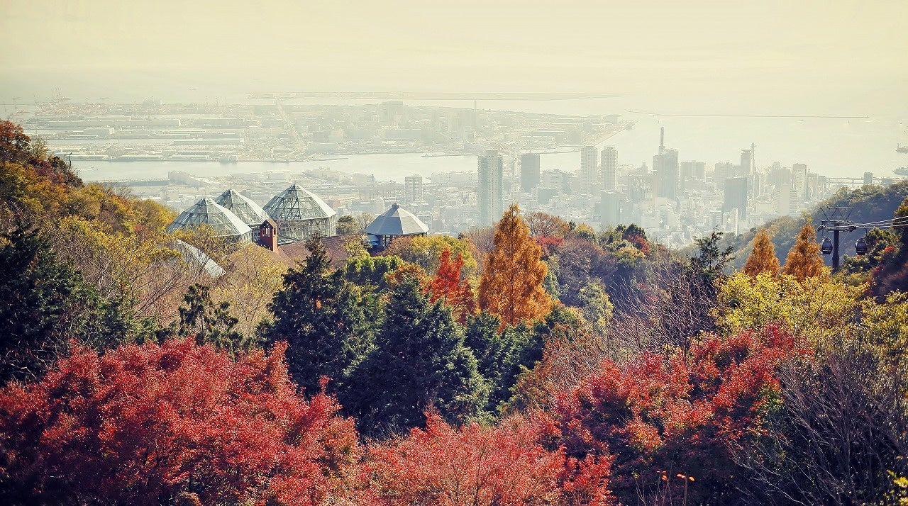神戸の紅葉の名所「布引の紅葉」間もなく見ごろに。秋色に彩るガーデンと紅葉が調和した自然の織りなす情景を楽しめます。ロープウェイからは色づく六甲山脈の壮大な景色が眼下に広がります。